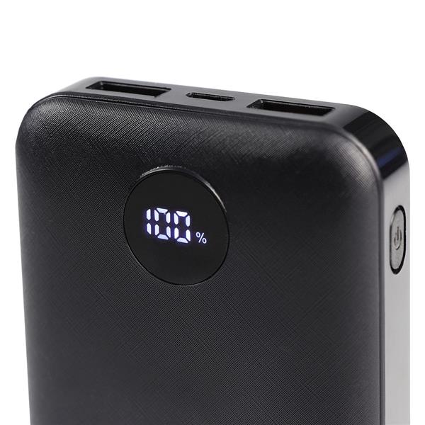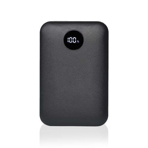 Power bank Air Gifts 10000 mAh, może zmieścić się w kieszeni czy większości przegródek w plecaku, posiada cyfrowy wyświetlacz poziomu naładowania, wejścia 5V/2A: USB-C oraz micro USB, 2 wyjścia USB (max. 5V/2A), możliwość ładowania dwóch urządzeń jednocześnie, w komplecie kabel USB-C oraz filcowe etui z karabińczykiem umożliwiającym przypinanie, produkt wykonany z ABS i filcu