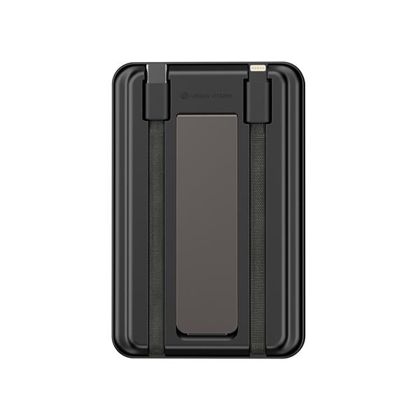 Power bank 10000 mAh, ładowarka bezprzewodowa 15W, możliwość ładowania 3 urządzeń jednocześnie, zintegrowane kable USB-C oraz iOS, wykonany z ABS z recyklingu, zawartość materiałów z recyklingu obliczona na podstawie wagi całkowitej przedmiotu: 24%