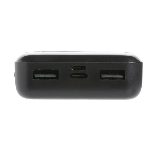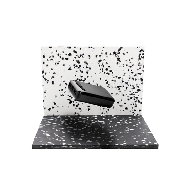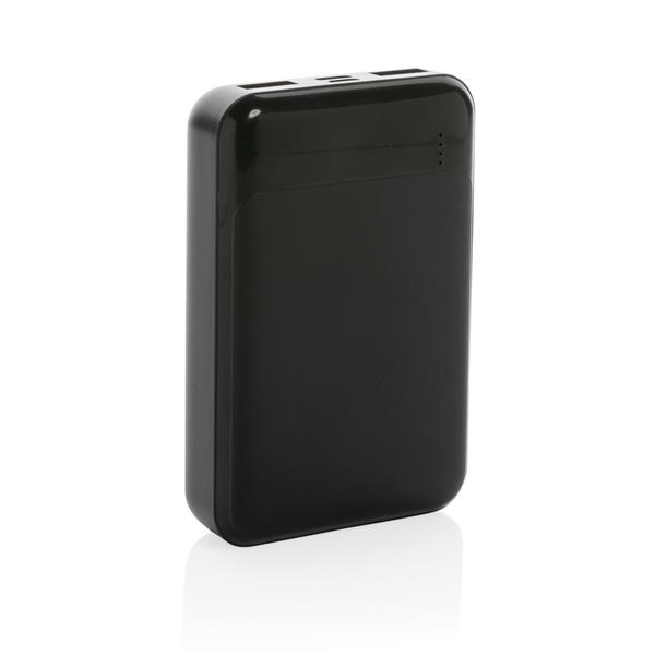 Power bank 10000 mAh, w pełni naładowany, wbudowany akumulator litowo polimerowy klasy A pozwala na naładowanie telefonu do 5 razy, obudowa wykonana z ABS pochodzącego z recyklingu, posiadają certyfikat RCS (Recycled Claim Standard), który jest stosowany gdy produkt jest wykonany częściowo lub w całości z materiałów pochodzących z recyklingu, wejście typu C 5V/2A, wejście micro USB 5V/2A, wyjście USB 5V/2A, kabel z TPE z recyklingu w komplecie, nie zawiera PVC, ślad węglowy produktu: 3,64 kg CO2