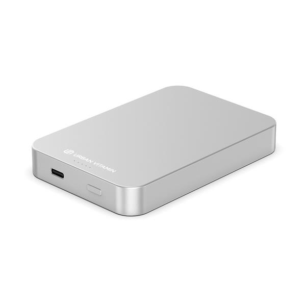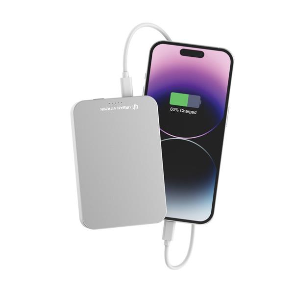 Power bank 10000 mAh, magnetyczna ładowarka bezprzewodowa 15W, szybkie ładowanie przewodowe 20W, wykonany z aluminium i ABS z recyklingu z certyfikatem RCS, wyjście USB typu C, ślad węglowy produktu: 4,13 kg CO2