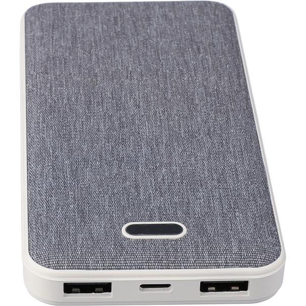 Power bank 10000 mAh, podwójne porty USB i USB-C 5V/2.4A, cyfrowy wyświetlacz ładowania, biały kabel 30 cm w komplecie, ikona RPET na produkcie, zapakowany w brązowe kartonowe pudełko, produkt wykonany z ABS i RPET