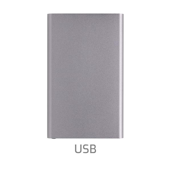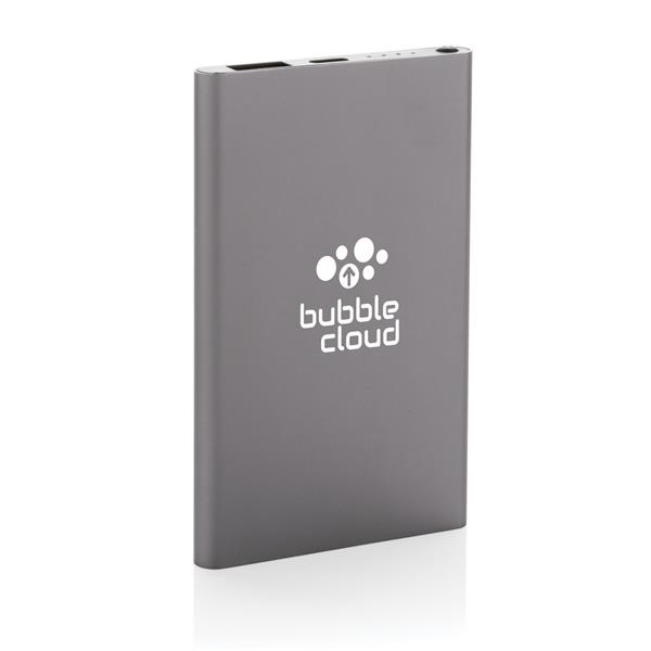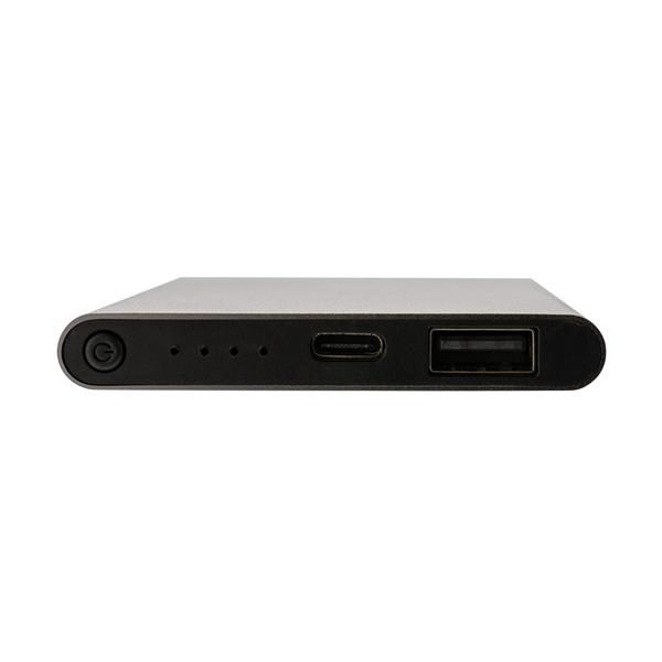 Power bank 4000 mAh, wskaźniki poziomu naładowania, wbudowany akumulator litowo-polimerowy klasy A, wykonany z aluminium i ABS z recyklingu, całkowita zawartość materiałów obliczona na podstawie wagi całkowitej przedmiotu: 66%, wejście USB typu C 5V/2A, wyjście USB typu C 5V/2A, wyjście USB 5V/2A, kabel z TPE z recyklingu z certyfikatem RCS w komplecie
