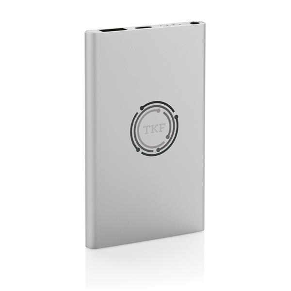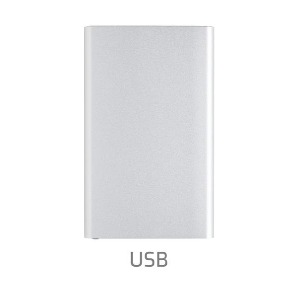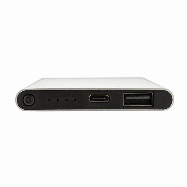 Power bank 4000 mAh, wskaźniki poziomu naładowania, wbudowany akumulator litowo-polimerowy klasy A, wykonany z aluminium i ABS z recyklingu, całkowita zawartość materiałów obliczona na podstawie wagi całkowitej przedmiotu: 66%, wejście USB typu C 5V/2A, wyjście USB typu C 5V/2A, wyjście USB 5V/2A, kabel z TPE z recyklingu z certyfikatem RCS w komplecie