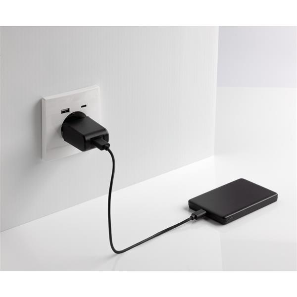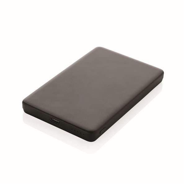 Power bank 5000 mAh, ładowarka bezprzewodowa 5W, obudowa została wykonana z aluminium pochodzącego z recyklingu z certyfikatem RCS i plastiku ABS pochodzącego z recyklingu. RCS (Recycled Claim Standard) to standard weryfikacji zawartości surowców wtórnych w produkcie w całym łańcuchu dostaw, produkt zawiera wytrzymałą baterię litowo-polimerową klasy A, wskaźniki zasilania wskazują pozostały poziom energii, wejście typu C: 5 V / 2,4 A; Wyjście USB C: 5 V / 2 A.4A, produkt i akcesoria nie zawierają PVC, zestaw zawiera kabel ładujący TPE z recyklingu z certyfikatem RCS