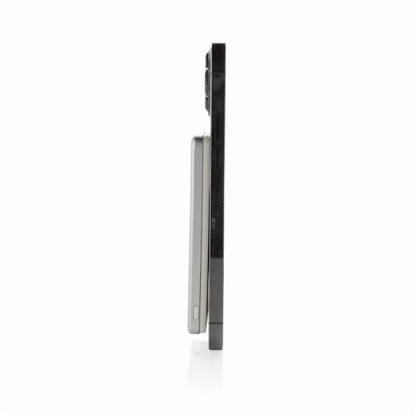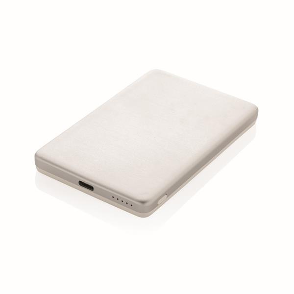 Power bank 5000 mAh, ładowarka bezprzewodowa 5W, obudowa została wykonana z aluminium pochodzącego z recyklingu z certyfikatem RCS i plastiku ABS pochodzącego z recyklingu. RCS (Recycled Claim Standard) to standard weryfikacji zawartości surowców wtórnych w produkcie w całym łańcuchu dostaw, produkt zawiera wytrzymałą baterię litowo-polimerową klasy A, wskaźniki zasilania wskazują pozostały poziom energii, wejście typu C: 5 V / 2,4 A; Wyjście USB C: 5 V / 2 A.4A, produkt i akcesoria nie zawierają PVC, zestaw zawiera kabel ładujący TPE z recyklingu z certyfikatem RCS