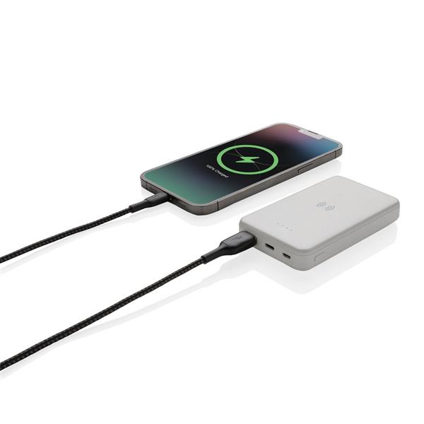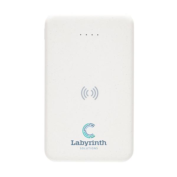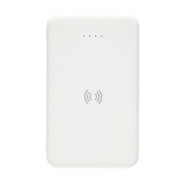Bezprzewodowy power bank 5000 mAh, ładowarka bezprzewodowa 5W, diody wskazujące poziom naładowania, wykonany z ABS z recyklingu z certyfikatem RCS, całkowita zawartość materiałów z recyklingu obliczona na podstawie wagi całkowitej przedmiotu: 26%, wbudowany akumulator litowo polimerowy o dużej gęstości, wejście micro USB 5V/2A, wejście USB typu C 5V/2.4A, wyjście USB typu C 5V/2.4A, wyjście USB 5V/2.4A, kabel z TPE z recyklingu z certyfikatem RCS w komplecie, w pudełku z papieru kraftowego z certyfikatem FSC® mix, ślad węglowy produktu: 2,31 kg CO2