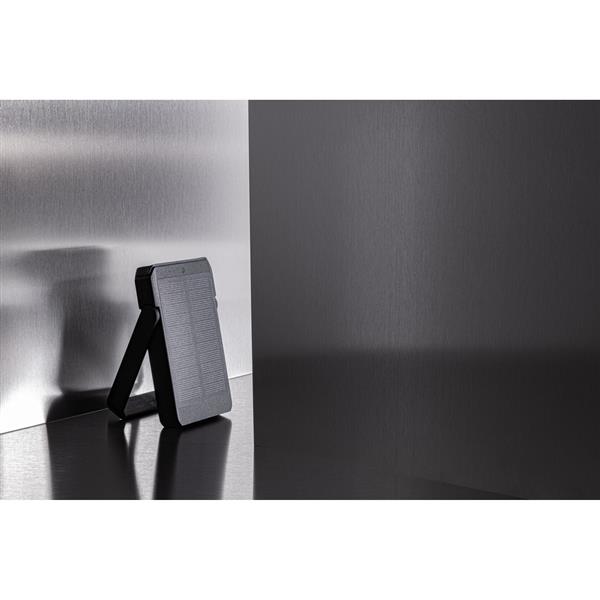 Power bank 5000 mAh z panelem słonecznym, magnetyczna ładowarka bezprzewodowa 10W, wykonany z ABS z recyklingu z certyfikatem RCS, całkowita zawartość materiałów z recyklingu obliczona w oparciu o wagę całkowitą przedmiotu: 21%, szybkość ładowania energią słoneczną 5V/0.13A, wejście 5V/2A, wyjście 5V/2A, kabel z TPE z recyklingu z certyfikatem RCS w komplecie, w pudełku z papieru kraftowego, wzór zastrzeżony®