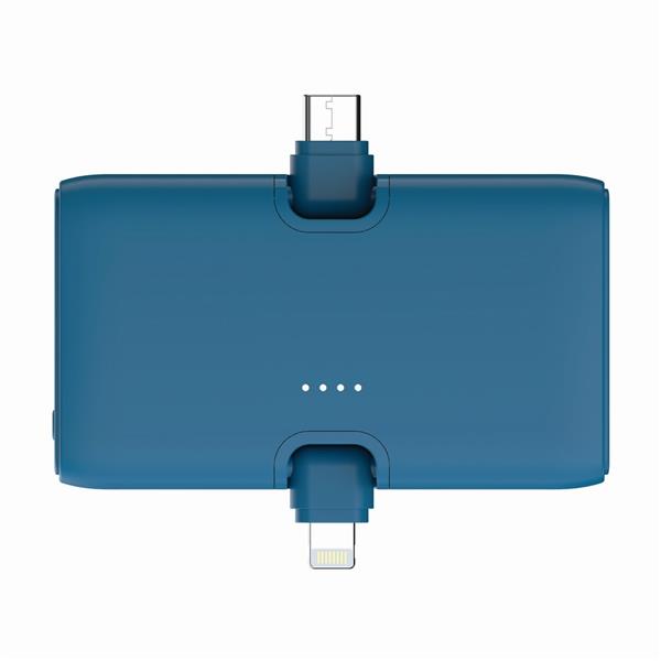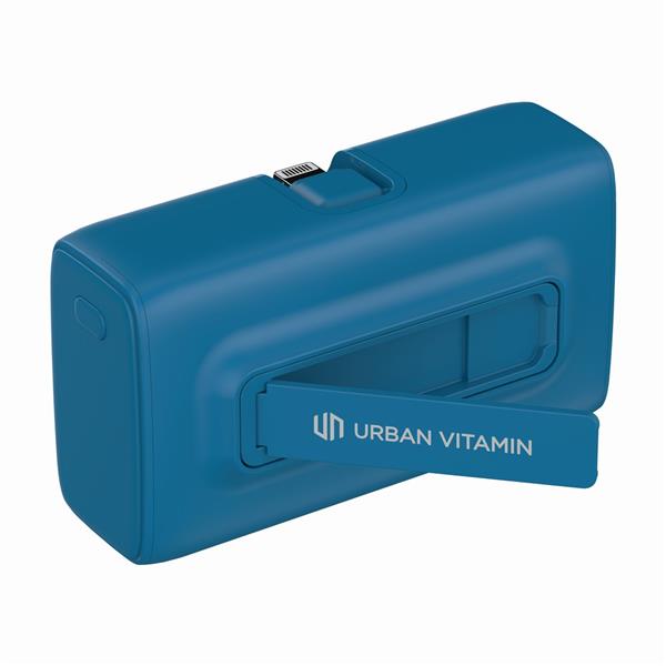 Power bank 5000 mAh, szybkie ładowanie do 20W, zintegrowane wyjścia USB-C i iOS, stojak na telefon, wyjście USB-C, wykonana z ABS z recyklingu, całkowita zawartość materiałów z recyklingu obliczona na podstawie wagi całkowitej produktu: 24%