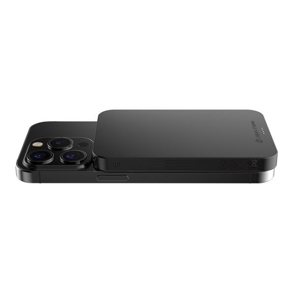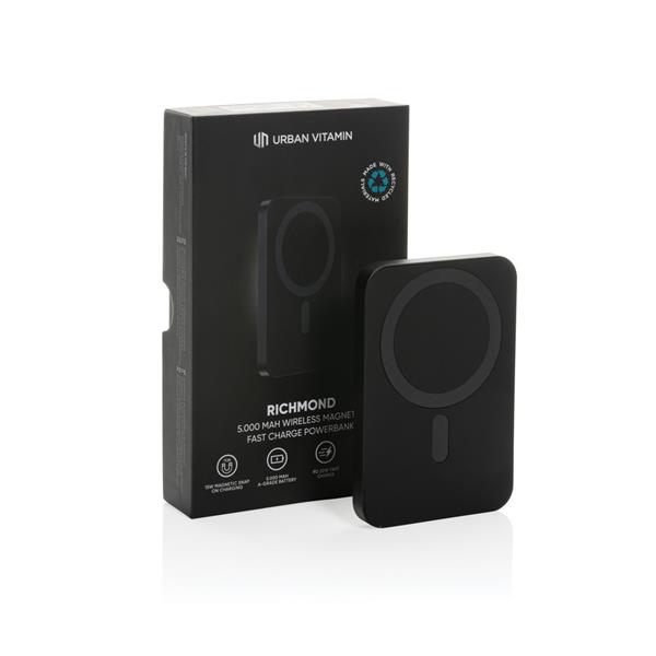 Power bank 5000 mAh, magnetyczna ładowarka bezprzewodowa 15W, szybkie ładowanie przewodowe 20W, wykonany z aluminium i ABS z recyklingu z certyfikatem RCS, wyjście USB typu C, ślad węglowy produktu: 2,63 kg CO2