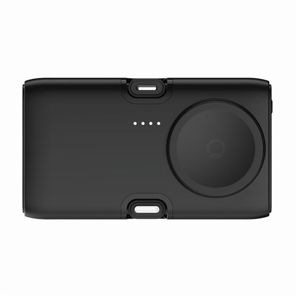 Power bank 5000 mAh, zintegrowana ładowarka bezprzewodowa do zegarka (tylko iOS), szybkie ładowanie do 20W, zintegrowane wyjścia USB-C i iOS, stojak na telefon, wyjście USB-C, działa z urządzeniami posiadającymi możliwość ładowania indukcyjnego, wykonana z ABS z recyklingu, całkowita zawartość materiałów z recyklingu obliczona na podstawie wagi całkowitej produktu: 24%