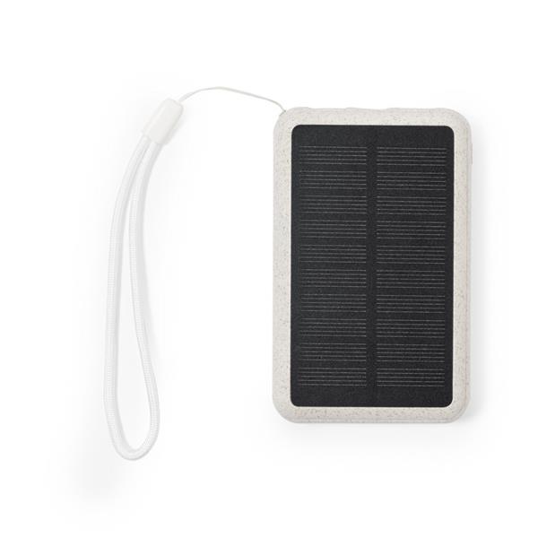 Power bank 5000 mAh z włókien słomy pszenicznej, ładowarka słoneczna, 5 diod wskazujących poziom naładowania, wejście/wyjście USB-C 5V/2.4A, 2 wyjścia USB 5V/2.4A, kabel USB-C w komplecie
