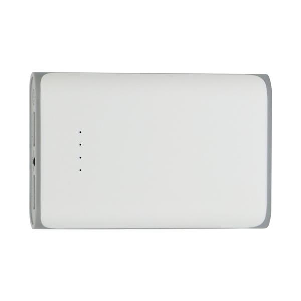 Power bank 6000 mAh, wyjścia 5V/2.1A oraz 5V/1A, wejście 5V/1A, 4 diody wskazujące poziom naładowania, lampka LED, w komplecie kabel micro USB