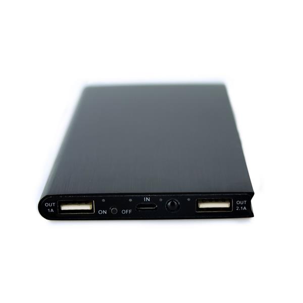 Power bank Mauro Conti 8000 mAh z lampką LED, wejście micro USB: 5V/2A, 2 wyjścia USB (1 USB: 5V/2.1A max, 2 USB: 5V/1A), 4 diody wskazujące poziom naładowania, etui i kabel micro USB w komplecie, w ozdobnym pudełku na magnes
