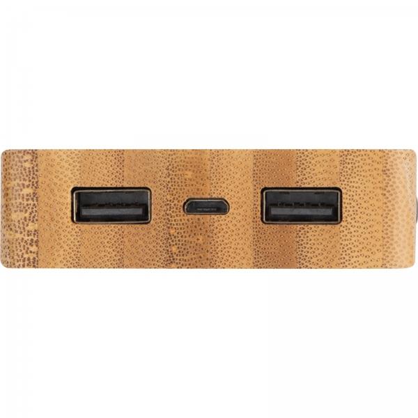 Power bank solarny o pojemności 8000 mAh w bambusowej obudowie. Kabel ładujący jest dołączony do zestawu.Dane techniczne:Output: 5.2V, 2000 mAh (max.)Input: 5V, 2000 mAh (max.)Pojemność: 8000 mAhWejścia/wyjścia: 2x USB A, type CInne:Dołączony kabelek ze złączami USB A i typ C