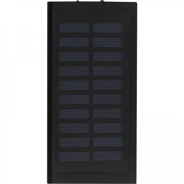 Wykonany z metalu solarny power bank o pojemności 8000mAh z kablem USB 3w1 do ładowania.