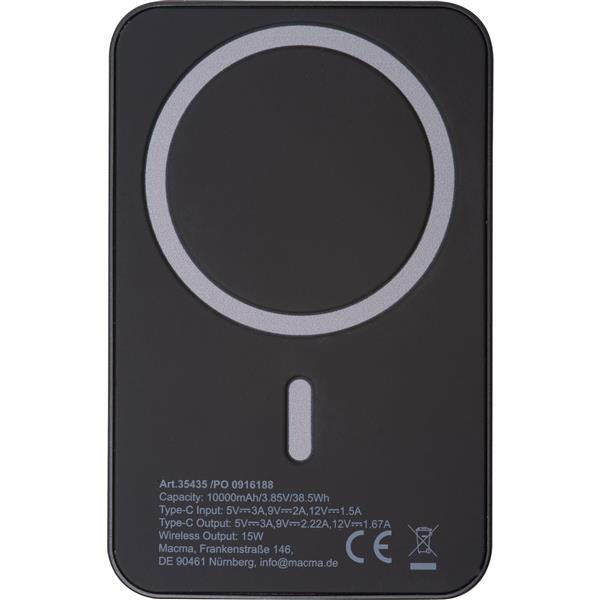 Power bank wykonany z recyklingowanego ABS o pojemności 10 000 mAh i funkcji superszybkiego ładowania 15 W. Dzięki wbudowanemu magnesowi urządzenie łatwo przymocowuje się do iPhone’a. Dla innych modeli obsługujących standard Qi pełni funkcję bezprzewodowej ładowarki.