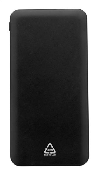 Power bank z recyklingu pozyskanego z plastiku ABS z baterią 10000 mAh. Z 2 portami ładowania USB i 1 portem USB-C. Porty wejściowe Micro USB i USB-C. Zawiera kabel USB.