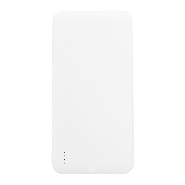 Power bank z recyklingu pozyskanego z plastiku ABS z baterią 10000 mAh. Z 2 portami ładowania USB i 1 portem USB-C. Porty wejściowe Micro USB i USB-C. Zawiera kabel USB.