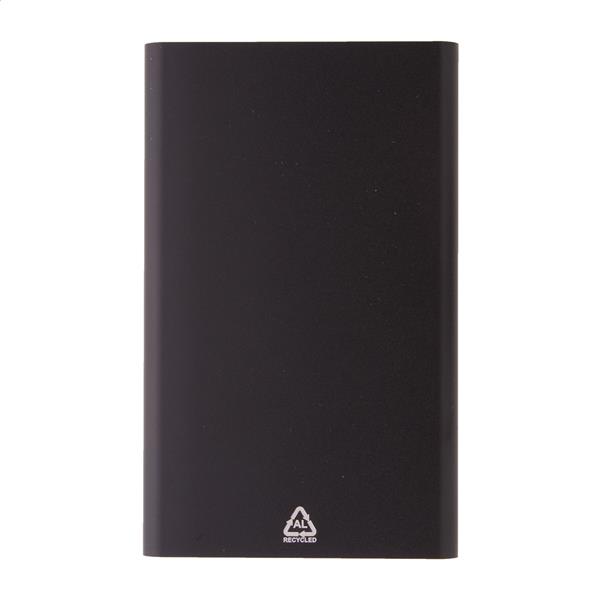 Power bank USB w obudowie z aluminium pochodzącego z recyklingu z baterią 4000 mAh. Z 1 portem USB i 1 portem USB-C do ładowania. Port wejściowy USB-C. Zawiera kabel USB.