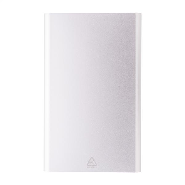 Power bank USB w obudowie z aluminium pochodzącego z recyklingu z baterią 4000 mAh. Z 1 portem USB i 1 portem USB-C do ładowania. Port wejściowy USB-C. Zawiera kabel USB.