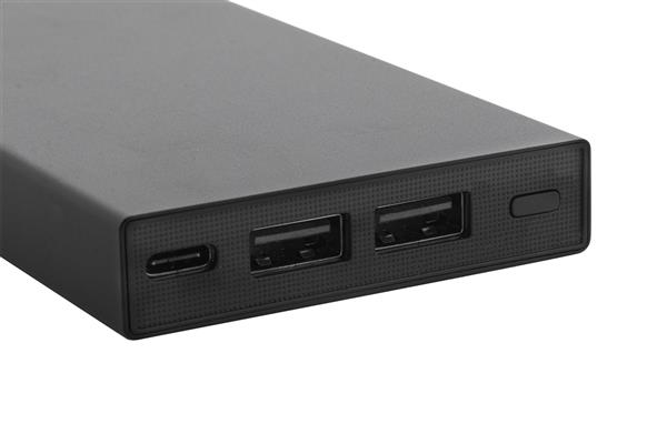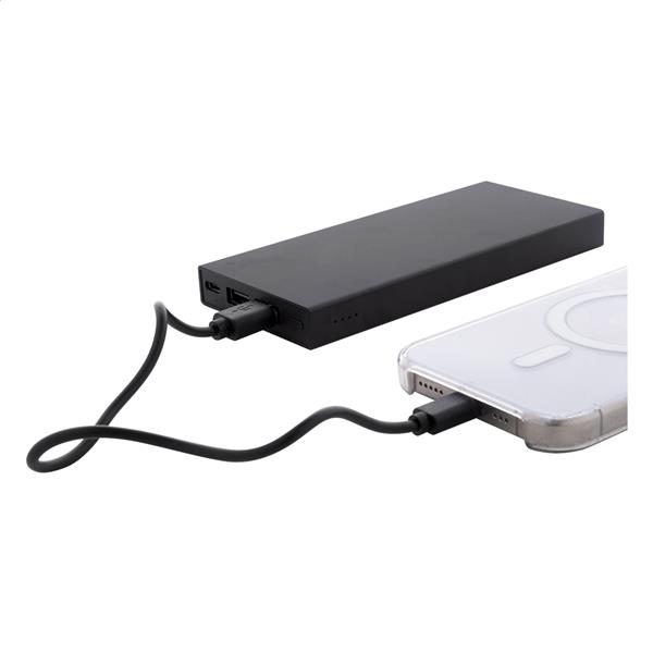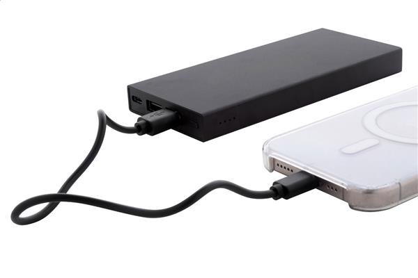 Power bank z aluminium pozyskanego z recyklingu z baterią 10000 mAh. Z 2 portami ładowania USB i 1 portem ładowania USB-C. Port wejściowy USB-C. Zawiera kabel USB.