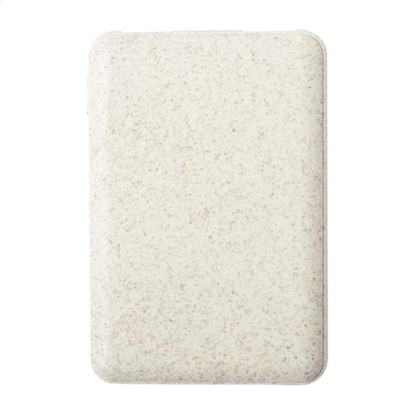 Power bank 5000 mAh w ekologicznej obudowie ze słomy pszenicznej z dwoma wyjściami USB. W zestawie kabel micro USB.