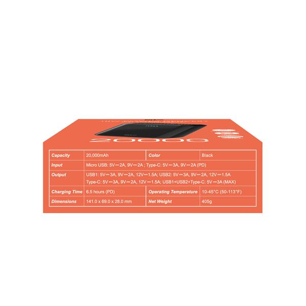 Power Bank QS28 ma potężną pojemność – 20 000 mAh, wystarczającą do pełnego naładowania większości smartfonów około 4-6 razy. Jego ergonomiczny kształt zapewnia wygodne trzymanie, elegancka powierzchnia lustra nadaje mu elegancki wygląd, a poręczny cyfrowy ekran LED pokazuje dokładny procent naładowania baterii, zapewniając niezawodne ładowanie przez cały czas. Specyfikacja: 2x USB A Out, 1x Micro USB + 1x USB C In/out, Li-Polymer, 20000mAh, with LCD, QC3.0 & PD szybkie ładowanie, kolor czarny
