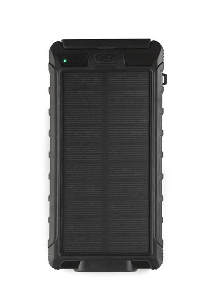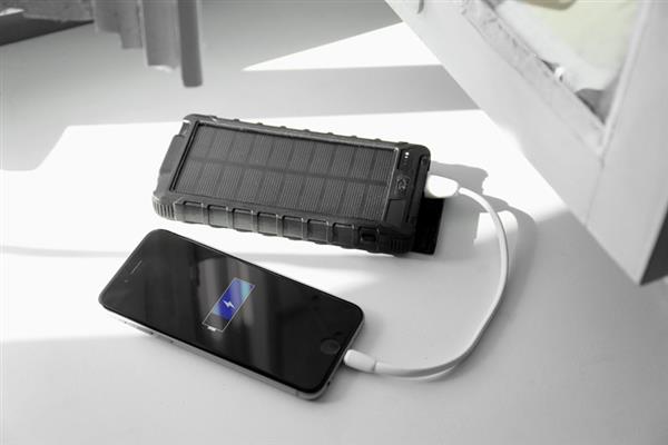 Power bank SOL posiada panel solarny i dużą pojemność 10 000 mAh, która wystarczy na kilka ładowań twojego telefonu. Diody pokazują aktualny poziom naładowania baterii. Wyposażony jest w podwójną latarkę z czterema trybami świecenia i wbudowany kompas. W zestawie standardowy kabel micro USB do ładowania. Produkt jest zgodny z odpowiednimi dyrektywami Unii Europejskiej, posiada znak CE oraz 1 rok gwarancji. Dane techniczne: wejście (micro USB i USB typu C) 5V/2A, 2 wyjścia USB 5V/2.1A (max), bateria litowo-polimerowa.