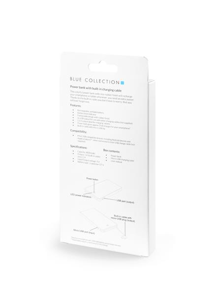 Power bank o niezwykłej, gumowanej powierzchni. Kształtem i rozmiarami przypomina smartfona, co daje wyobrażenie jak bardzo poręczne jest to urządzenie. Interesujący design dopełnia miła dla oka kolorystyka. VIVID posiada sprytnie chowany zintegrowany kabel z wtyczką micro USB oraz dodatkowy port USB, co umożliwia ładowanie 2 urządzeń jednocześnie. Do ładowania power banka służy port micro USB. Dodatkowo power bank posiada 4 diody informujące o poziomie baterii. Wejście 5 V / 1 A, wyjście 5V / 1 A (zintegrowany kabel) i 2.1 A (port USB). Pojemność 4000 mAh. W zestawie dołączony kabel z wtyczką micro USB.