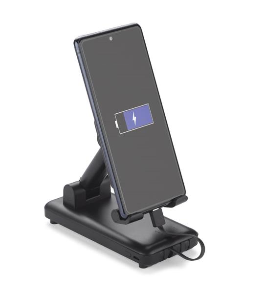 Power bank SEGURO to wyjątkowe połączenie stojaka na telefon z przenośną baterią. Dzięki temu możesz wygodnie użytkować telefon podczas gotowania lub pracy jednocześnie go ładując. Pod spodem urządzenia umieszczone są kable do ładowania USB A/micro USB/USB C oraz Lightning (Apple) służące zarówno do ładowania urządzenia zewnętrznego jak i samego power banku. Również takie same role pełni wejście po boku urządzenia USB A. Ramie posiada regulację w 3 płaszczyznach co w połączeniu z antypoślizgową powierzchnią i gumowymi nóżkami zapewnia wyogdne i stabilne użytkowanie. Produkt jest zgodny z odpowiednimi dyrektywami Unii Europejskiej, posiada znak CE oraz 1 rok gwarancji.