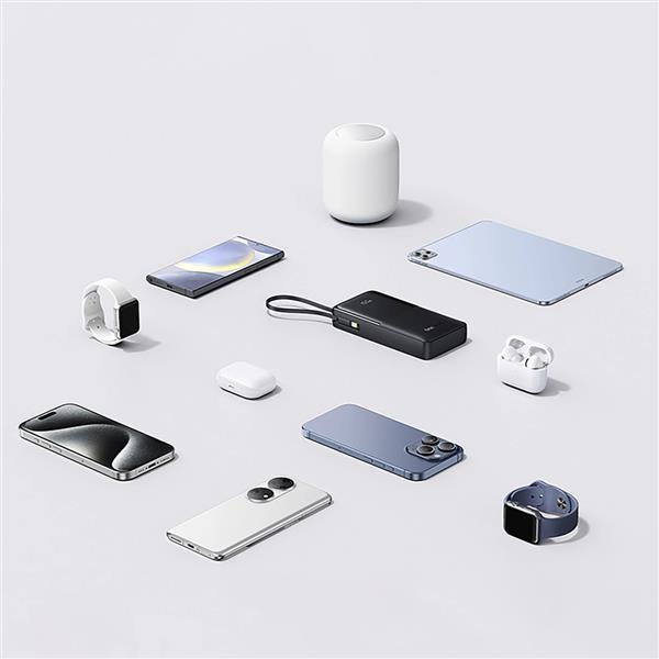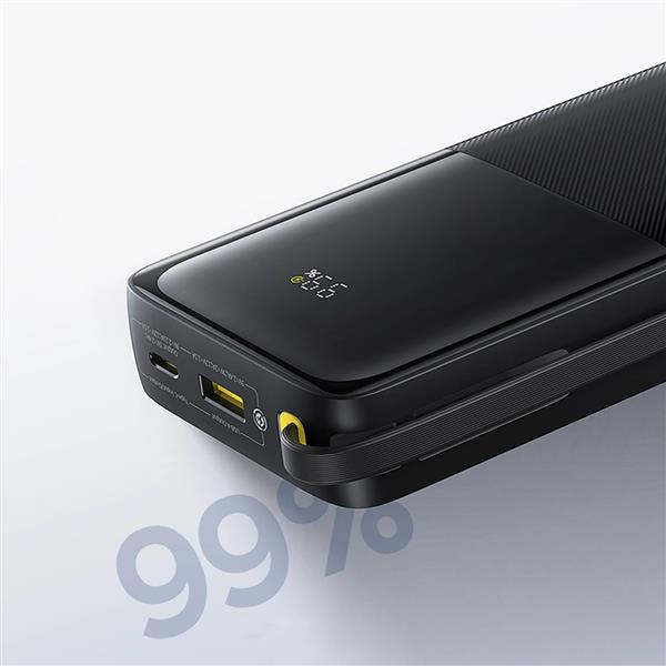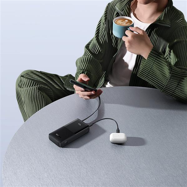 Baseus Bipow 2 ma zintegrowany kabel USB-C, który eliminuje konieczność noszenia dodatkowych przewodów. Wystarczy podłączyć urządzenie, by natychmiast rozpocząć ładowanie – wygodnie i bez bałaganu w torbie.
