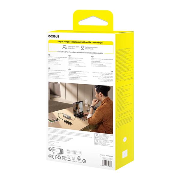 Najważniejsze zalety Powerbank Baseus Free2Pull 20000mAh 65W ze zwijanym kablem USB-C – szary: