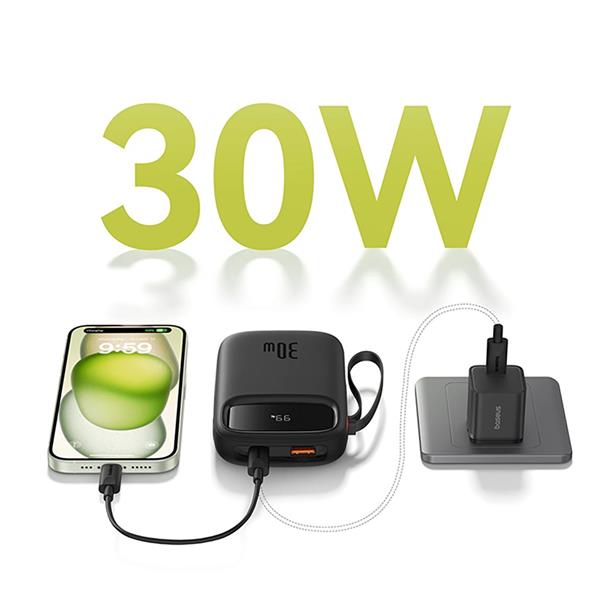 Dzięki obsłudze szybkiego ładowania dwukierunkowego o mocy 30W, Baseus QPow 2 zapewnia szybkie uzupełnienie energii zarówno dla urządzeń mobilnych, jak i samego powerbanka. Naładuj iPhone’a 15 Pro do 57% w zaledwie 30 minut!