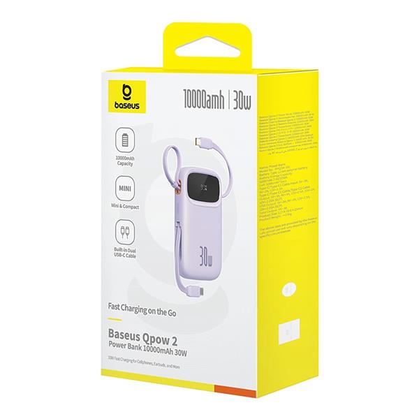 Baseus QPow 2 to innowacyjny powerbank, który łączy w sobie wysoką pojemność 10,000 mAh, zaawansowane technologie szybkiego ładowania oraz kompaktowy design. Dzięki obsłudze wielu protokołów ładowania, takich jak PD3.0, QC3.0, SCP i AFC, zapewnia błyskawiczne uzupełnianie energii w Twoich urządzeniach. Wbudowane kable USB-C oraz dodatkowe porty umożliwiają jednoczesne ładowanie aż czterech urządzeń, co czyni go niezwykle wszechstronnym. Wyposażony w funkcje ochronne, takie jak zabezpieczenia przed przepięciem i przegrzaniem, jest bezpieczny i niezawodny. Kompaktowy rozmiar, waga zaledwie 236 g oraz wygodny pasek sprawiają, że jest to idealny towarzysz w podróży. Wybierz Baseus QPow 2 i ciesz się wygodą oraz wydajnością w każdej sytuacji!