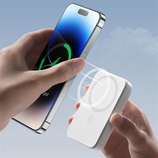 Powerbank Joyroom JR-W020 umożliwia błyskawiczne ładowanie trzech urządzeń w jednym czasie. Współpracuje z technologią MagSafe oraz posiada złącza USB-A i USB-C. Wspiera protokół szybkiego ładowania – Power Delivery. Posiada 10000 mAh pojemności, więc pozwala na ładowanie smartfonu, słuchawek czy małych urządzeń elektronicznych.