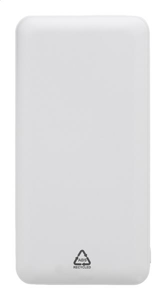 Powerbank z recyklingowanego ABS o pojemności 20000 mAh. Z 2 portami ładowania USB i 1 portem USB-C. Porty wejściowe micro USB i USB-C. W zestawie kabel do ładowania USB.