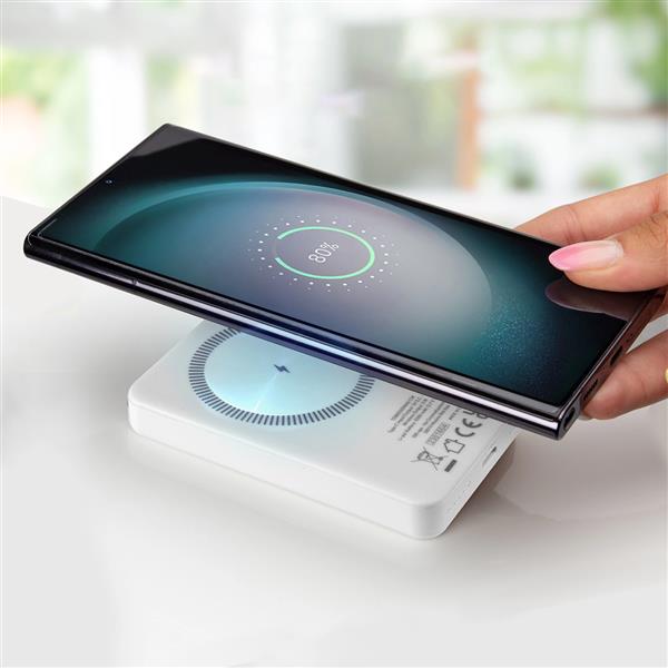 Powerbank SBS TEBB5000MAG1CW magnetycznie przyczepia się do iPhone’ów z technologią MagSafe, oferując bezproblemowe ładowanie. Ponadto współpracuje z innymi urządzeniami z funkcją ładowania bezprzewodowego, dzięki czemu jest niezwykle uniwersalny.
