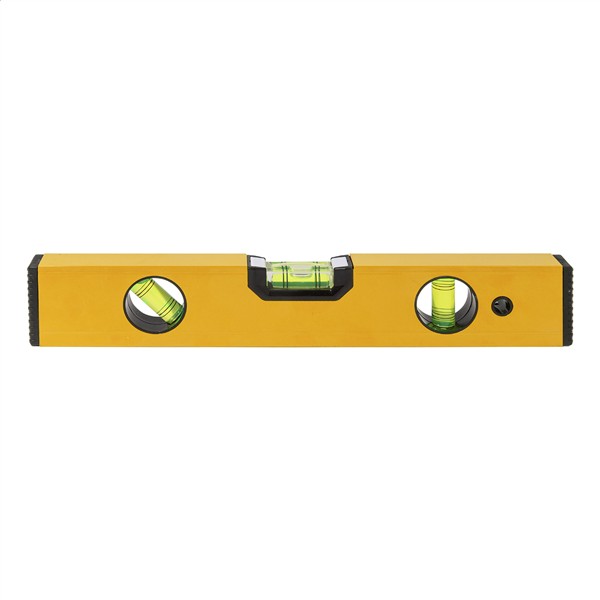 Poziomica magnetyczna wykonana z recyklingowanego aluminium z trzema poziomicami (poziomą, pionową i 45°) i linijką o długości 30 cm.