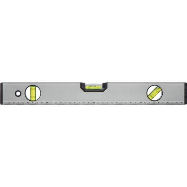 Poziomica wykonana z aluminium, z trzema libelkami – poziom, pion, kąt 45°, magnetyczną podstawą i 40 cm miarką.