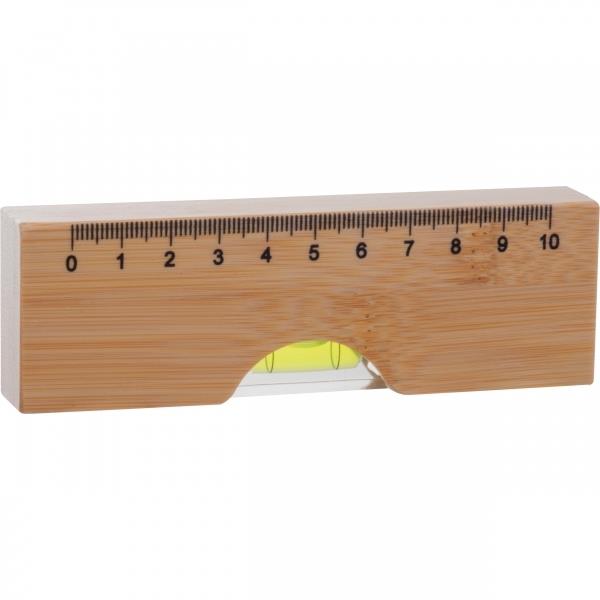 Poziomnica wykonana z bambusa ze skalą pomiarową i otwieraczem.