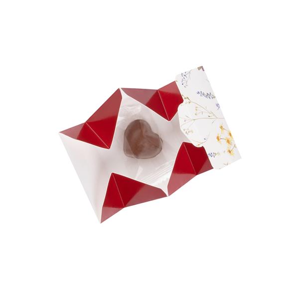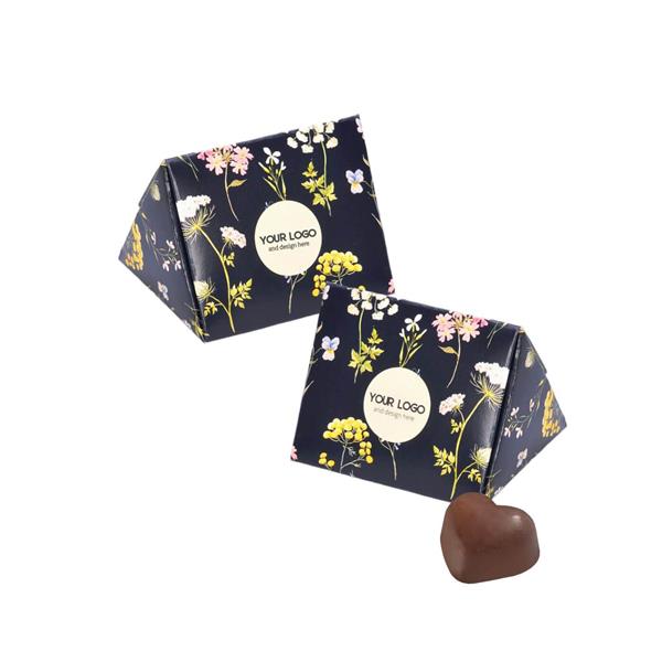 Każdą pralinkę pakujemy w folię kompostowalną oraz niewielkie pudełeczko z certyfikatem FSC, co daje nie tylko opakowanie w pełni biodegradowalne, ale zapewnia też maksymalne wykorzystanie oferowanej powierzchni zadruku. Co jest najlepsze? Nie ma żadnych ograniczeń względem liczby kolorów czy skomplikowania projektu graficznego!