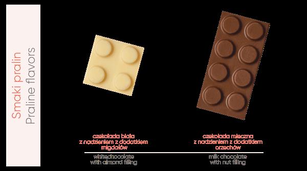 Pralinki w kształcie klocków to nie tylko słodycz, ale również oryginalny gadżet reklamowy, który skieruje przekaz prosto do serc Twoich klientów. Te kreatywne przekąski nie tylko prezentują się nietuzinkowo, ale również przyciągają uwagę swoim niepowtarzalnym kształtem i smakiem. Delektuj się mleczną czekoladą z nadzieniem z dodatkiem orzechów laskowych oraz białą czekoladą z nadzieniem z dodatkiem migdałów.