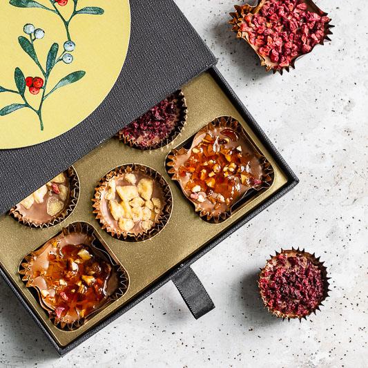 PRALINY PRIME GOLD CUPS to wykwintne praliny, które reprezentują najwyższy standard wśród słodyczy. Ta elegancka bombonierka, zawierająca 12 nadziewanych pralinek z belgijskiej czekolady klasy gourmet, świetnie wpisuje się w trend świątecznych prezentów biznesowych. Praliny Prime Gold Cups charakteryzują się w pełni naturalnym nadzieniem, stworzonym z najwyższej jakości bakalii i owoców, wzbogaconym chrupiącymi dodatkami.