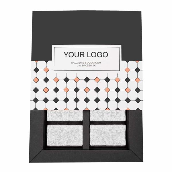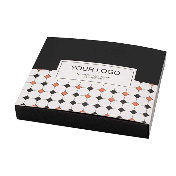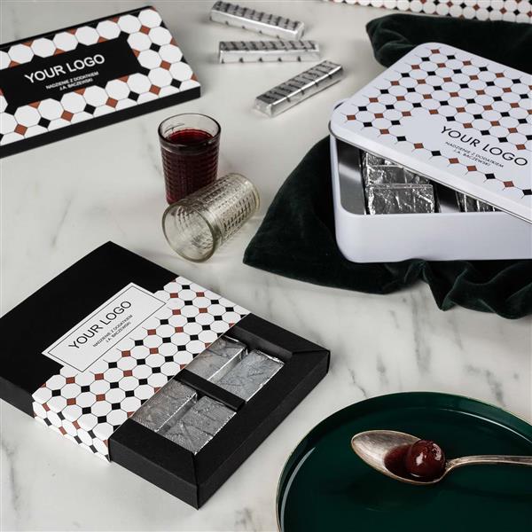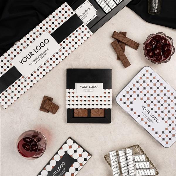Praliny premium to świetny pomysł na drobny, elegancki upominek, tym bardziej, że czekoladki zapakowane są w stylowe pudełko utrzymane w estetyce art deco. Stylowy print widoczny na opakowaniu nawiązuje do wzoru widocznego na podłodze w ikonicznej kawiarni Cafe Bristol.
