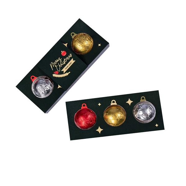 PRALINY SWEET SPHERE BOWTIE 3 SZT to również mała bombonierka reklamowa, która łączy w sobie elegancję i funkcjonalność. Każda pralina zapakowana jest w folię w kolorach srebrnym, złotym lub czerwonym, co dodaje jej luksusowego charakteru.