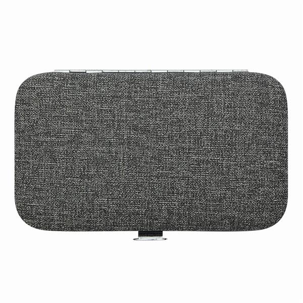Zestaw do manicure PRETTY IN BLACK składający się z 5 elementów. Zawiera pilniczek do paznokci, pęsetę, nożyczki do skórek i paznokci, cążki oraz radełko do skórek. W prostokątnym etui z przyciskiem z boku. Materiał: Plastik/Stal Kolor: szary Tagi: Zestawy do manicure,akcesoria kosmetyczne,wellness,zestawy do pielęgnacji paznokci,zdrowie
