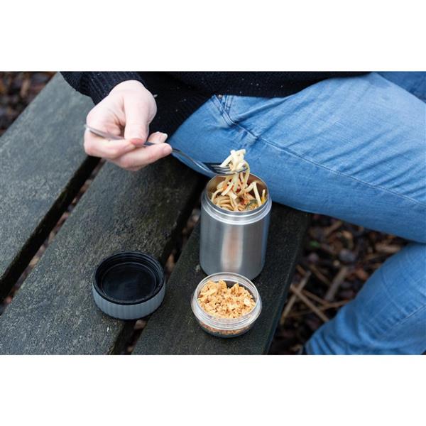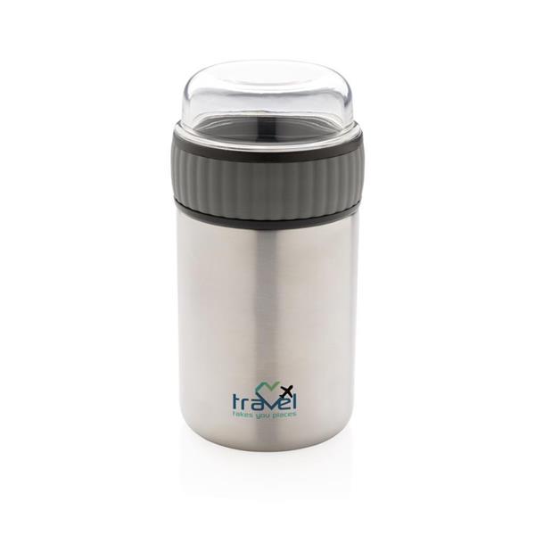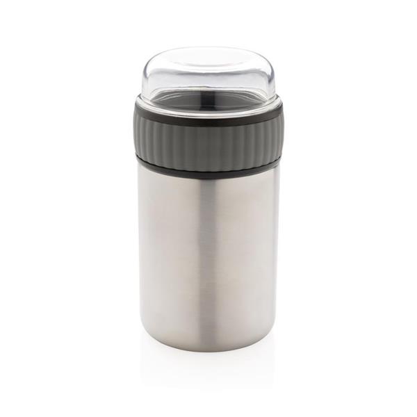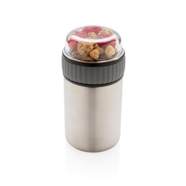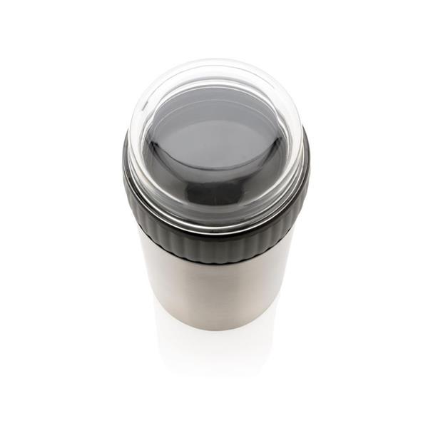 Próżniowy pojemnik na żywność 380 ml, szczelny, wewnątrz stal nierdzewna 304, wieczko z Tritanu z pojemnikiem na owoce lub orzechy, utrzymuje niską temperaturę żywności do 15 godzin oraz wysoką do 5 godzin