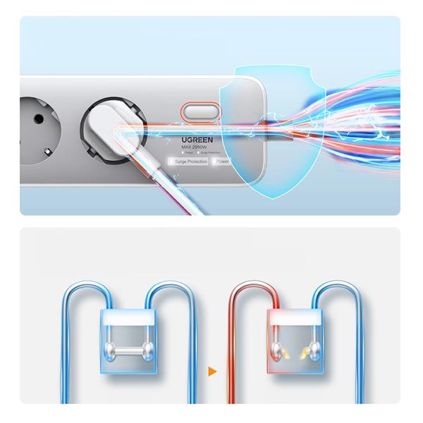 Ugreen CD286 wyposażony jest w najnowszą technologię ochrony przed przepięciami. Trzy rezystory pochłaniają napięcie 4KV natychmiastowo, a bezpiecznik automatycznie wykrywa wysoką temperaturę, zapewniając bezpieczeństwo Twoich urządzeń. Dodatkowe chipy chronią przed nadmiernym prądem i zwarciami, a diody LED informują o stanie zabezpieczeń, co daje Ci pełną kontrolę.