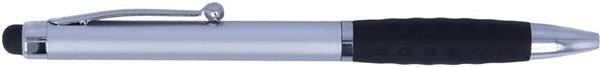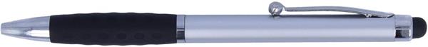 Przekręcany długopis z ABS z metalicznym wykończeniem. Delikatna silikonowa końcówka do urządzeń z ekranem dotykowym. Niebieski wkład.