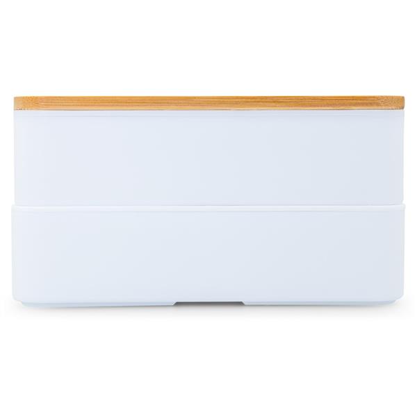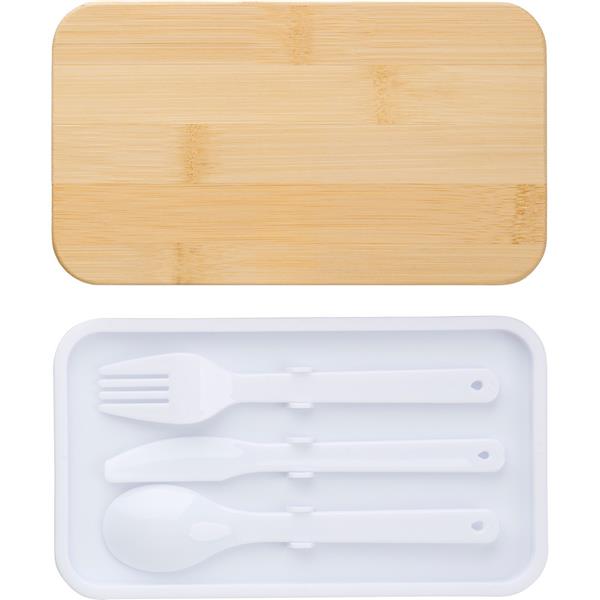 Pudełka śniadaniowe 2 w 1, 2×400 ml, w komplecie: widelec, nóż, łyżka, bambusowe wieczko, połączone paskiem